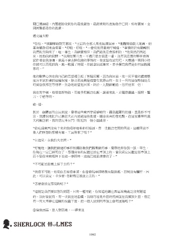 “好極啦。讓我把做過的事和根據跡象我們將要做的事,簡單地和你談一談。華生,