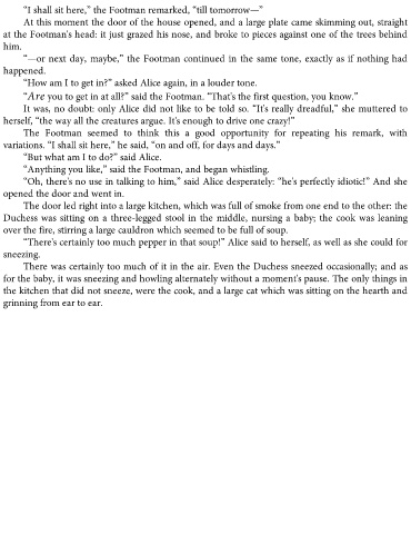“Are you to get in at all?” said the Footman. “That's the first question, you know.”