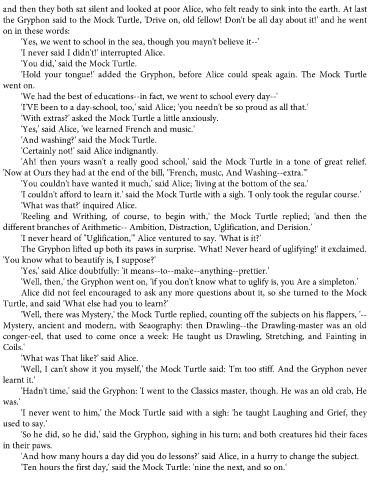 'Ah! then yours wasn't a really good school,' said the Mock Turtle in a tone of great relief.