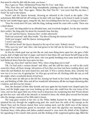 'Off with her head!' the Queen shouted at the top of her voice. Nobody moved.