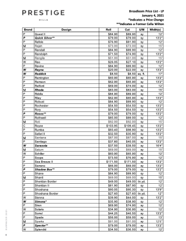 Broadloom Price List - LP January 4, 2021 *Indicates a Price Change **Indicates a Former Cella Wilton