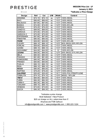 MISSONI Price List - LP January 4, 2021 *Indicates a Price Change