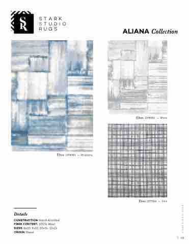 Details CONSTRUCTION: Hand-Knotted FIBER CONTENT: 100% Wool SIZES: 8x10, 9x12, 10x14, 12x15 ORIGIN: Nepal Elton 137838A — Blueberry STARK STUDIO RUGS 2021 ALIANA Collection 1 Elton 137838C — Rhino Eron 137726A — Flint 125 STARK STUDIO RUGS