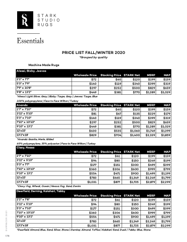 PRICE LIST FALL/WINTER 2020 *Grouped by quality