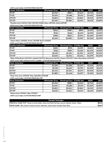 Machine made 2'x3' *Alessi, Ananda, Bixby, Cissy, Deerfield, Derning, Jeeves, Kalahari, Nessa, Tabby $549 Hand made *Alta, Armen, Cosette, Dunes, Halstead, Janae, Kiyan, Kumba, Parsi, Rona $899