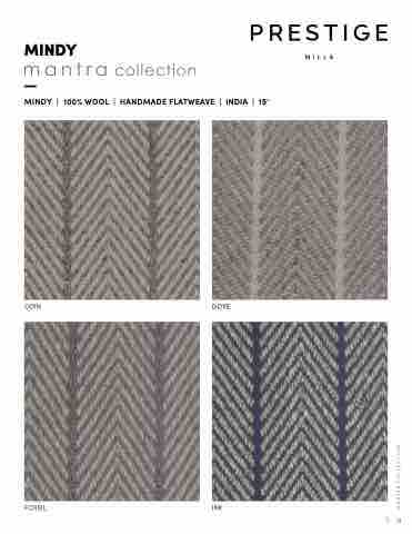 PRESTIGE MILLS 2021 MINDY MINDY | 100% WOOL | HANDMADE FLATWEAVE | INDIA | 15’ COIN DOVE FOSSIL INK 19 MANTRA COLLECTION
