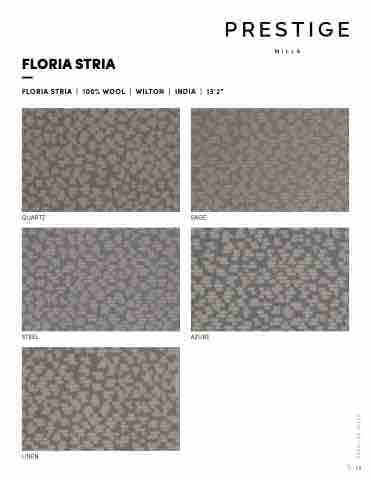PRESTIGE MILLS 2021 FLORIA STRIA FLORIA STRIA | 100% WOOL | WILTON | INDIA | 13’2” QUARTZ SAGE STEEL AZURE LINEN 29 PRESTIGE MILLS