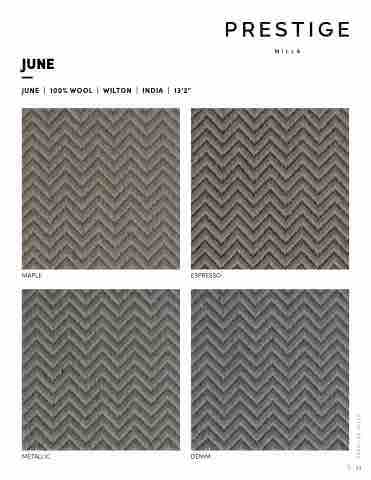 PRESTIGE MILLS 2021 JUNE JUNE | 100% WOOL | WILTON | INDIA | 13’2” MAPLE ESPRESSO METALLIC DENIM 33 PRESTIGE MILLS