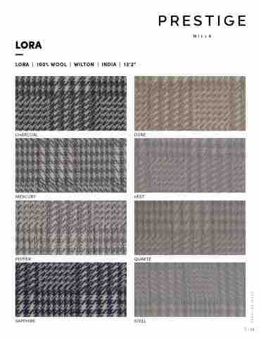PRESTIGE MILLS 2021 LORA LORA | 100% WOOL | WILTON | INDIA | 13’2” CHARCOAL DUNE MERCURY MIST PEPPER QUARTZ SAPPHIRE STEEL 35 PRESTIGE MILLS