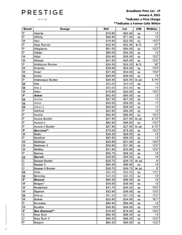 Broadloom Price List - LP January 4, 2021 *Indicates a Price Change **Indicates a Former Cella Wilton