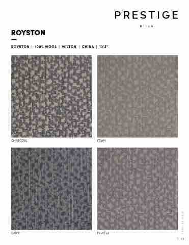PRESTIGE MILLS 2021 ROYSTON ROYSTON | 100% WOOL | WILTON | CHINA | 13’2” CHARCOAL FAWN ONYX PEWTER 39 PRESTIGE MILLS