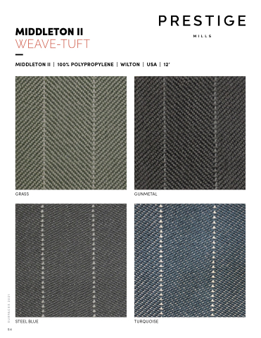 PRESTIGE MILLS 2021 MIDDLETON II MIDDLETON II | 100% POLYPROPYLENE | WILTON | USA | 12’ GRASS GUNMETAL 54 STEEL BLUE TURQUOISE SURFACES 2021