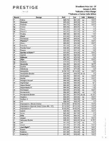 Broadloom Price List - LP January 4, 2021 *Indicates a Price Change **Indicates a Former Cella Wilton
