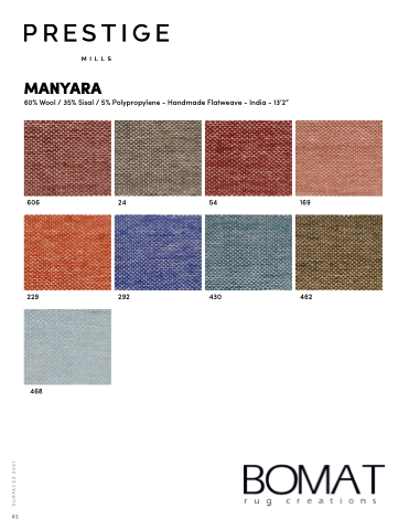 MANYARA 60% Wool / 35% Sisal / 5% Polypropylene - Handmade Flatweave - India - 13’2” 606 24 54 169 229 292 430 462 468 82 SURFACES 2021