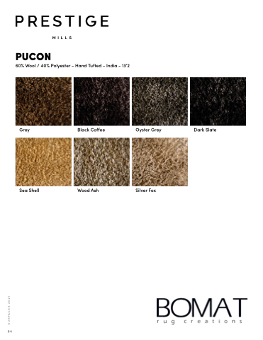PUCON 60% Wool / 40% Polyester - Hand Tufted - India - 13’2 Grey Black Coffee Oyster Grey Dark Slate Sea Shell Wood Ash Silver Fox 84 SURFACES 2021