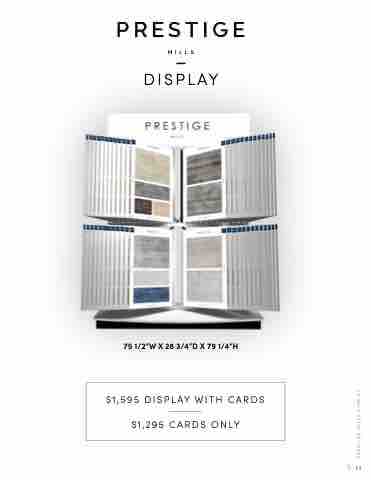 DISPLAY WITH CARDS $1,295 CARD DISPLAY 75 1/2”W X 28 3/4”D X 79 1/4”H $1,595 DISPLAY WITH CARDS $1,295 CARDS ONLY 89 5O PRESTIGE MILLS DISPLAY