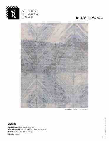STARK STUDIO RUGS 2021 ALBY Collection 1 Rhombus 119372A — Grey/Blue Details CONSTRUCTION: Hand-Knotted FIBER CONTENT: 60% Bamboo Silk / 40% Wool SIZES: 8x10, 9x12, 10x14, 12x15 ORIGIN: Nepal 91 STARK STUDIO RUGS