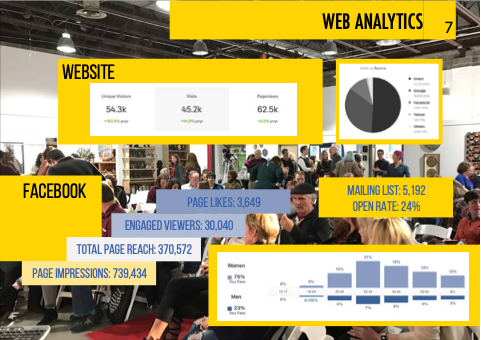 WEB ANALYTICS 7 WEBSITE FACEBOOK ENGAGED VIEWERS: 30,040 PAGE LIKES: 3,649 TOTAL PAGE REACH: 370,572 PAGE IMPRESSIONS: 739,434 MAILING LIST: 5,192 OPEN RATE: 24%