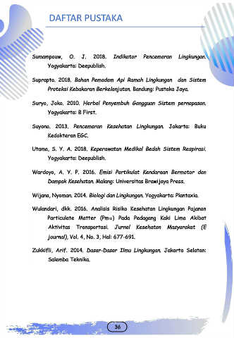 Suyono. 2013. Pencemaran Kesehatan Lingkungan. Jakarta: Buku