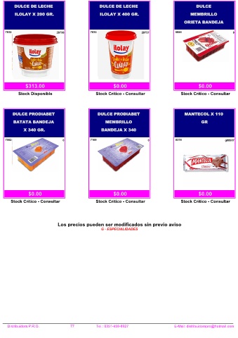 Distribuidora P.R.O. 77 Tel.: 0351-458-8927 E-Mail: distribuidorapro@hotmail.com