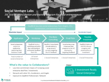 • Network with other VCs, Accelerators, and Angels Social Enterprise