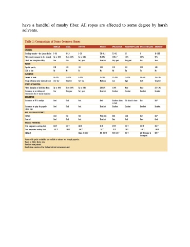 have a handful of mushy fiber. All ropes are affected to some degree by harsh solvents.