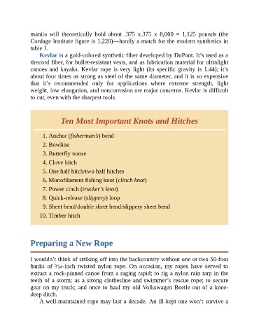 canoes and kayaks. Kevlar rope is very light (its specific gravity is 1.44); it’s