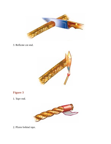 3. Reflame cut end. Figure 3 1. Tape end. 2. Flame behind tape.