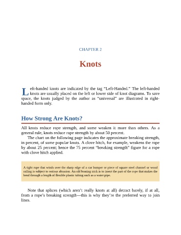 in percent, of some popular knots. A clove hitch, for example, weakens the rope