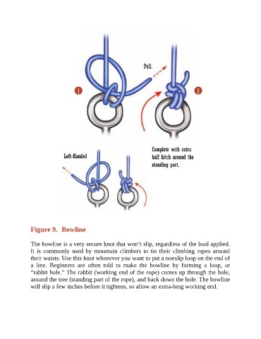 The bowline is a very secure knot that won’t slip, regardless of the load applied.