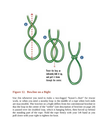that the loop in the center of the “rabbit” (see description of bowline on page 24)