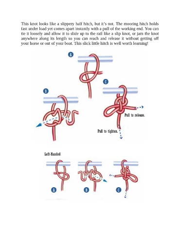 This knot looks like a slippery half hitch, but it’s not. The mooring hitch holds