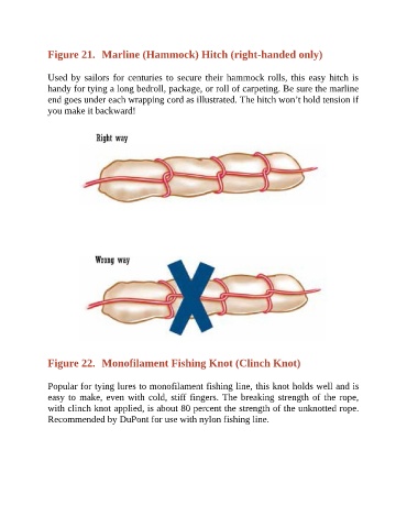 handy for tying a long bedroll, package, or roll of carpeting. Be sure the marline