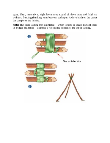 Note: The sheer lashing (not illustrated)—which is used to secure parallel spars