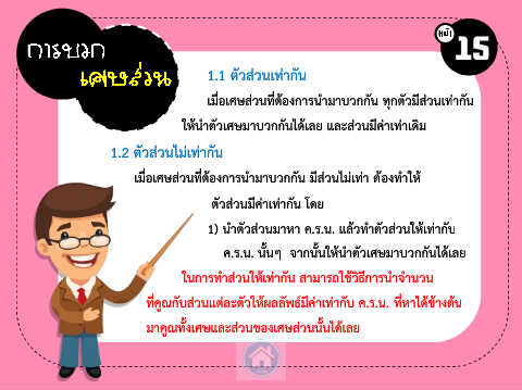 ให้น ำตัวเศษมำบวกกันได้เลย และส่วนมีค่ำเท่ำเดิม