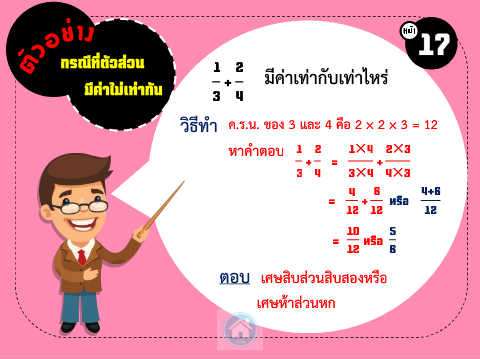 กรณีที่ตัวส่วน                                                    1 2                   มีค่ำเท่ำกับเท่ำไหร่