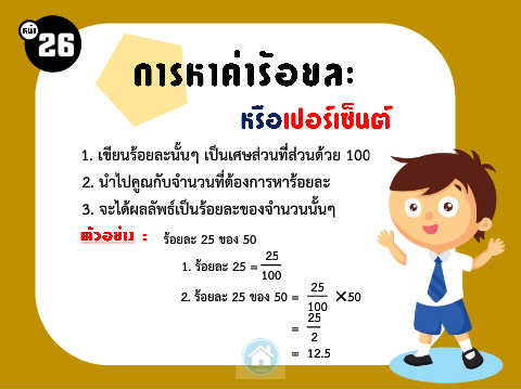 2. ร้อยละ 25 ของ 50 =                              100        ×50