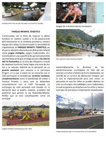 conjuntamente con el GAD Parroquial. La solo un columpio, dos subibajas y una resbaladera,
