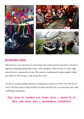 experience planning memorable events, with 6 members, Chew Events is a close, tight