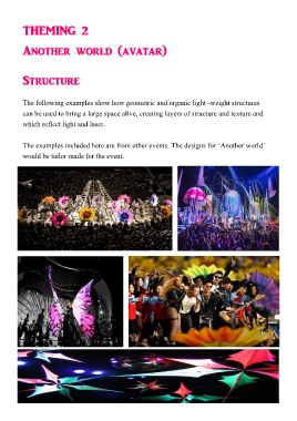 The examples included here are from other events. The designs for ‘Another world’