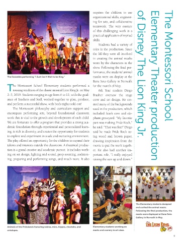 he Montessori School Elementary students performed a for the month of May. Elementary Theater production