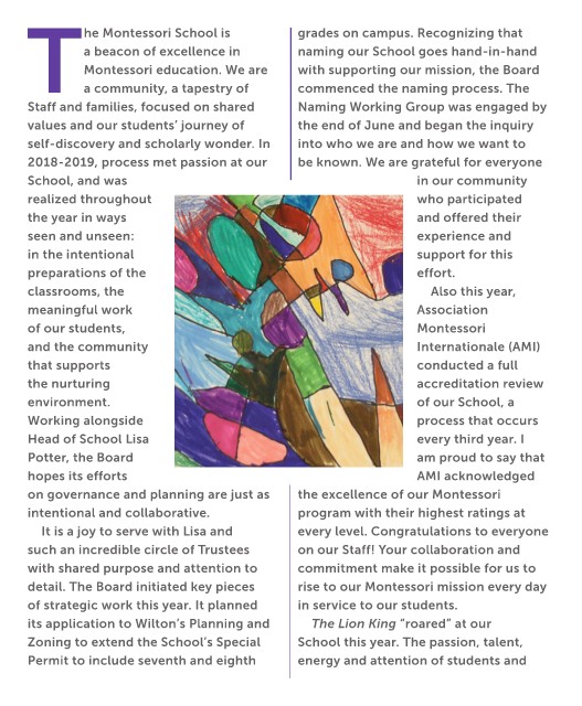 detail. The Board initiated key pieces rise to our Montessori mission every day