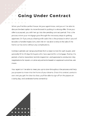 period, a home inspection, termite inspection, and appraisal is conducted. Any