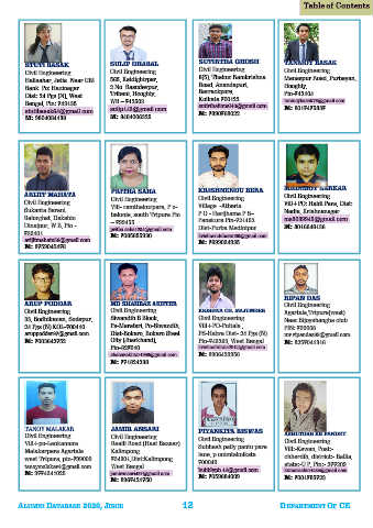 ALUMNI DATABASE 2020, JISCE 12 DEPARTMENT OF CE