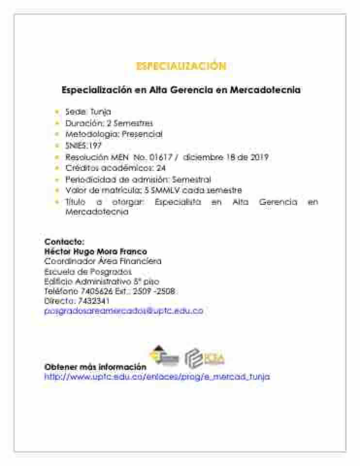 Teléfono 7405626 Ext.: 2509 -2508 Directo: 7432341 posgradosareamercados@uptc.edu.co