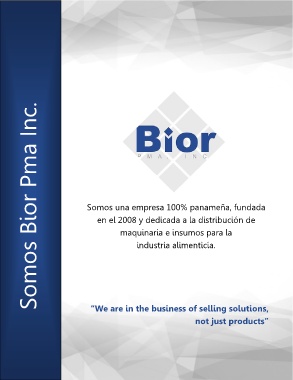 Somos Bior Pma Inc. Somos una empresa 100% panameña, fundada en el 2008 y dedicada a la distribución de maquinaria e insumos para la industria alimenticia. “We are in the business of selling solutions, not just products”