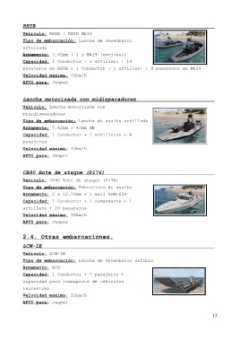 pasajeros en RHIB o 1 Conductor + 1 artillero + 9 pasajeros en Mk19