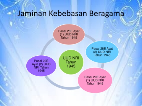 Jaminan Kebebasan Beragama Pasal 28E Ayat (1) UUD NRI Tahun 1945 Pasal 28E Ayat (2) UUD NRI Tahun 1945 UUD NRI Pasal 29E Tahun Ayat (2) UUD NRI Tahun 1945 1945 Pasal 29E Ayat (1) UUD NRI Tahun 1945