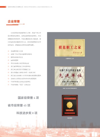 化集团优秀承包商、中石化集团优质工程金奖、浙