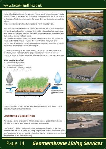 capabilities extend from single home reed beds of 100m² to beds in excess of 10,000m². The materials used for this type of application are: